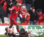 he threw a dart in tghe grimsby players face and charlesey protests his innoncence!